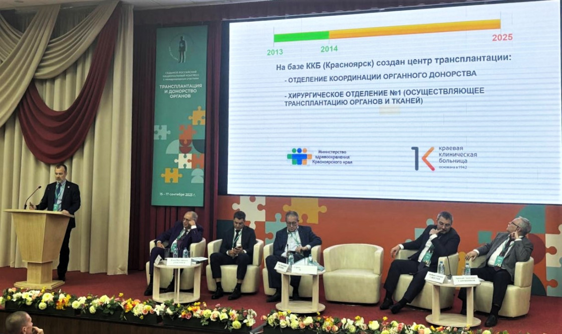 Сергей Ивлиев, врач-нефролог отделения гемодиализа, главный нефролог Красноярского края и Сибирского Федерального округа выступил на тематической сессии «Трансплантация почки как способ оптимизации региональных расходов на заместительную почечную терапию». Заведующий отделением хирургии №1 краевой клинической больницы, хирург-трансплантолог Станислав Слабнин выступил на пленарном заседании «К 35-летию трансплантации печени в России» с докладом «10 лет трансплантации печени в Красноярском крае. Результаты Красноярской краевой клинической больницы».