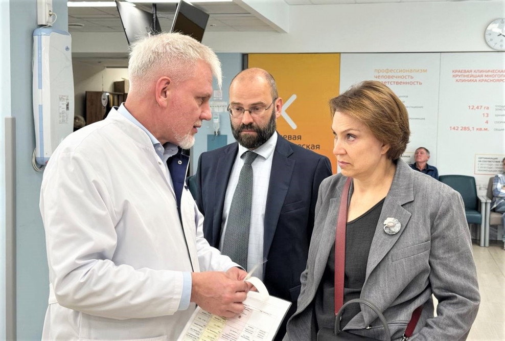 В рамках визита глава департамента Минздрава РФ встретилась с главным врачом ККБ Егором Корчагиным, а также с заместителем главного врача Игорем Чуваковым, курирующим работу санитарной авиации Красноярского края. Была представлена инфраструктура санитарной авиации, организация информационного взаимодействия между районными учреждениями здравоохранения и региональными медицинскими центрами в рамках реализации федерального проекта «Совершенствование экстренной медицинской помощи для обеспечения доступности экстренной и неотложной помощи с использованием санитарной авиации». Также Инне Куликовой рассказали о работе кабинета телемедицинских консультаций, который проводит дистанционные видео-консилиумы и сессии медиков районных больниц с краевыми и федеральными специализированными медицинскими центрами.