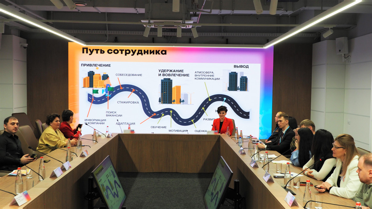 На круглых столах эксперты представили и обсудили примеры успешных профориентационных практик, поделились опытом реализации профильных проектов. Участие в круглом столе «Код единства: Семья. Профессия. Родина» приняла менеджер по персоналу Красноярской краевой клинической больницы Надежда Кравчук. В своём докладе «Возможности для молодых сотрудников в КГБУЗ «Краевая клиническая больница»» специалист службы персонала представила путь молодого сотрудника от первого визита до становления в роли опытного сотрудника.